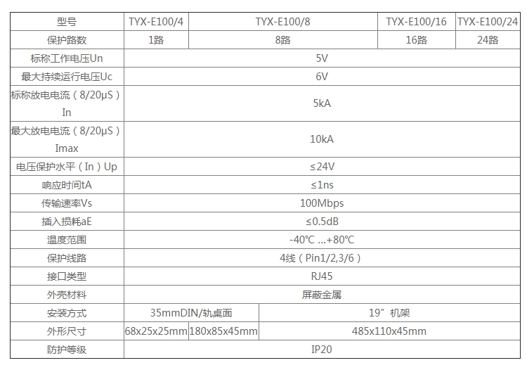 網(wǎng)絡(luò)防雷器技術(shù)參數(shù):