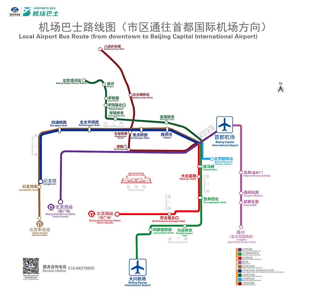 市區(qū)旅客可方便乘坐市內(nèi)機(jī)場巴士往返首都機(jī)場與公主墳、北京西站、通州、北京南站、北京清河站、北京朝陽站、大興機(jī)場、八達(dá)嶺長城等地。