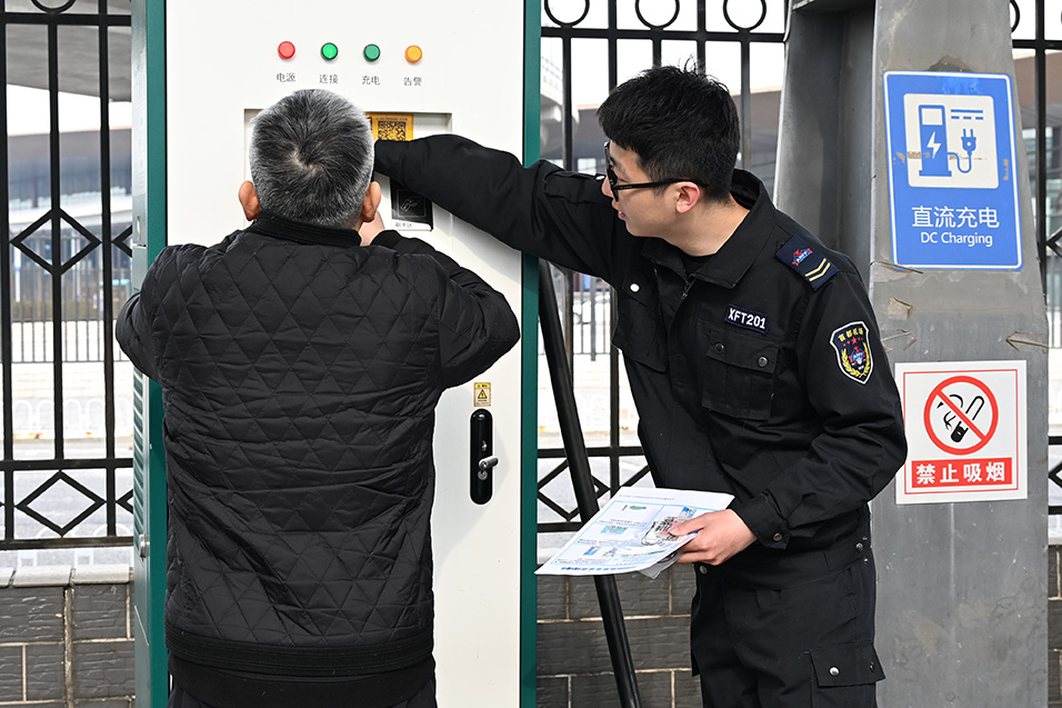 近日,首都機(jī)場(chǎng)在3號(hào)航站樓東側(cè)新能源充電站開展了“志愿同行,守護(hù)綠色出行路”活動(dòng),旨在增強(qiáng)新能源車主的安全意識(shí),為安全綠色出行添磚加瓦。在活動(dòng)現(xiàn)場(chǎng),志愿者向前來充電的新能源車主發(fā)放消防安全宣傳資料,并結(jié)合實(shí)際案例,為車主進(jìn)行詳細(xì)講解。資料涵蓋春季新能源汽車常見的火災(zāi)隱患,日常安全檢查要點(diǎn)以及充電注意事項(xiàng)等內(nèi)容。周澎 孫小菲 攝影報(bào)道